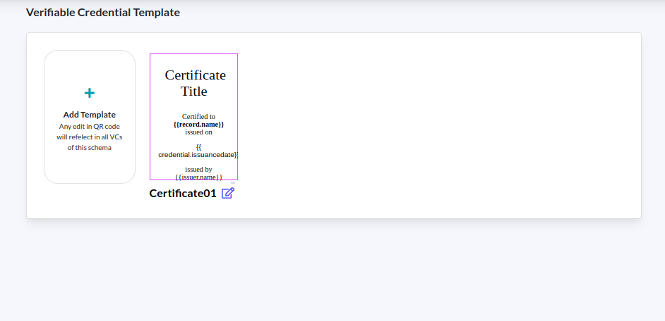 2. You can select existing template or [create custom template](https://docs.sunbirdrc.dev/developer-documentation/admin-portal/get-started/vc-template/custom-verifiable-credential-template)